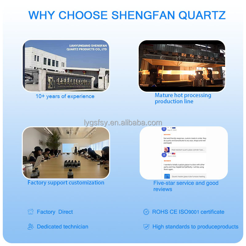 • Il tubo di vetro di quarzo Shengfan è perfetto per una varietà di applicazioni a causa del suo tubo di quarzo e del materiale del tubo di silice fuso.offrendo prestazioni e durata superioriQuesti tubi di vetro al quarzo sono disponibili in vari spessori di parete e diametri esterni, rendendoli ideali per qualsiasi applicazione.